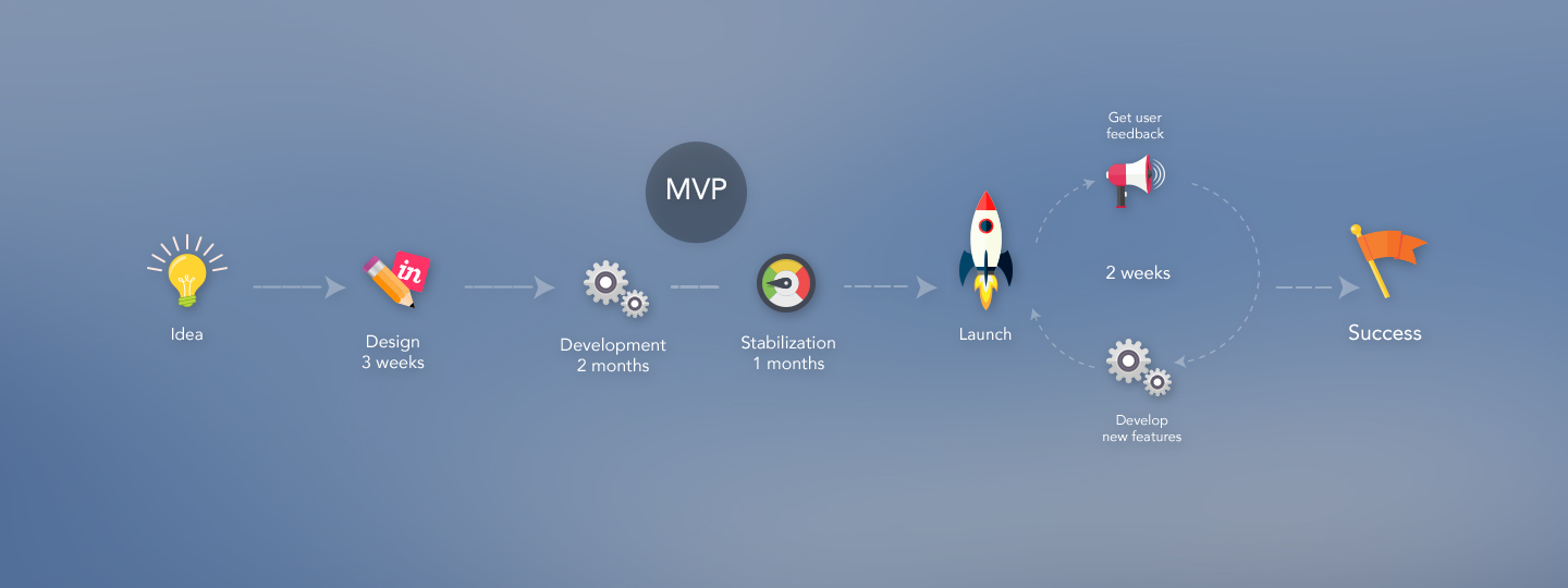 Let’s consider app/startup development stages on the example of our company.